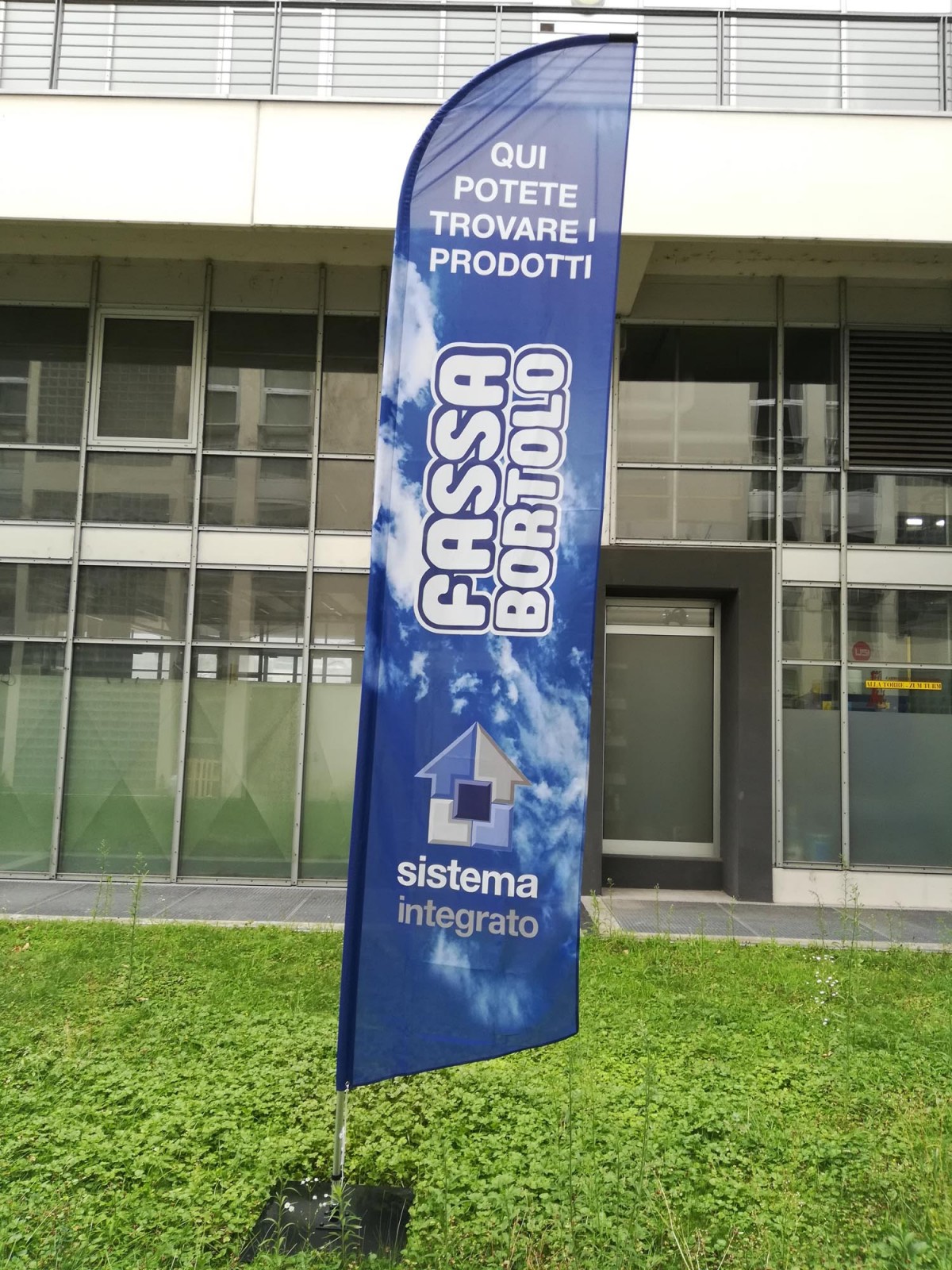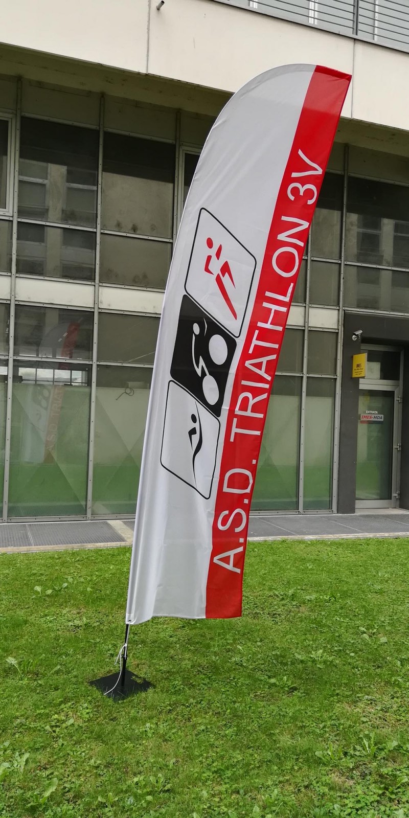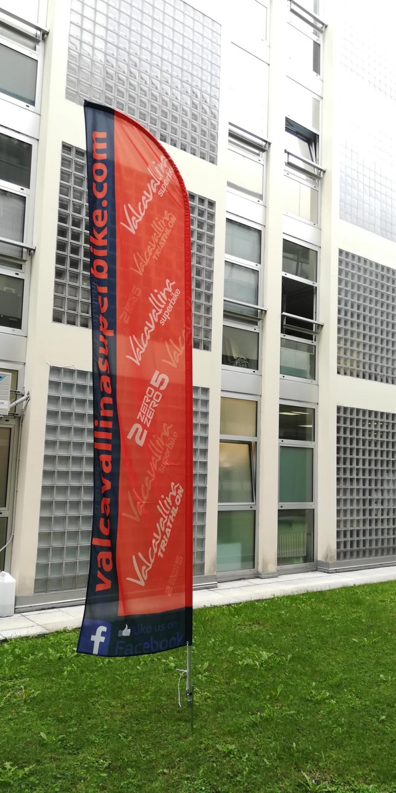 Anche per le bandiere a vela, viene utilizzato un apposito tessuto chiamato flag nautico che permette vi vedere la stampa sia da un lato che dall’altro. Tale stampa viene detta stampa passante. Su tutte le nostre bandiere prestiamo particolare attenzione alla confezione del tessuto ossia la qualità delle cuciture, degli orli e delle asole che devono essere realizzate per la buona riuscita della bandiera. Lo stelo della bandiera o asta, è sempre realizzata in alluminio e quasi tutti i modelli hanno un terminale in fibra di vetro. Alcuni modelli più performanti e di maggiore qualità hanno l’intero stelo realizzato in fibra di vetro e carbonio o in alluminio. Gli steli sono sempre divisi in moduli che si innestano l’uno nell’altro per poter essere più facilmente trasportati. Per essere sorretta la bandiera a vela, come le bandiere a goccia o quelle rettangolari hanno necessità di un’apposita base. Le basi a disposizione sono basi a trivella per la neve o sabbia, basi in ferro, basi a croce con apposite zavorre o basi sottoruota. Con questo tipo di bandiera riusciamo a raggiungere altezza oltre i 5 metri.